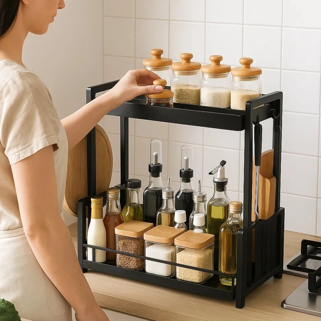 🥈 2. Suporte Organizador de Temperos de Metal Preto para Armário